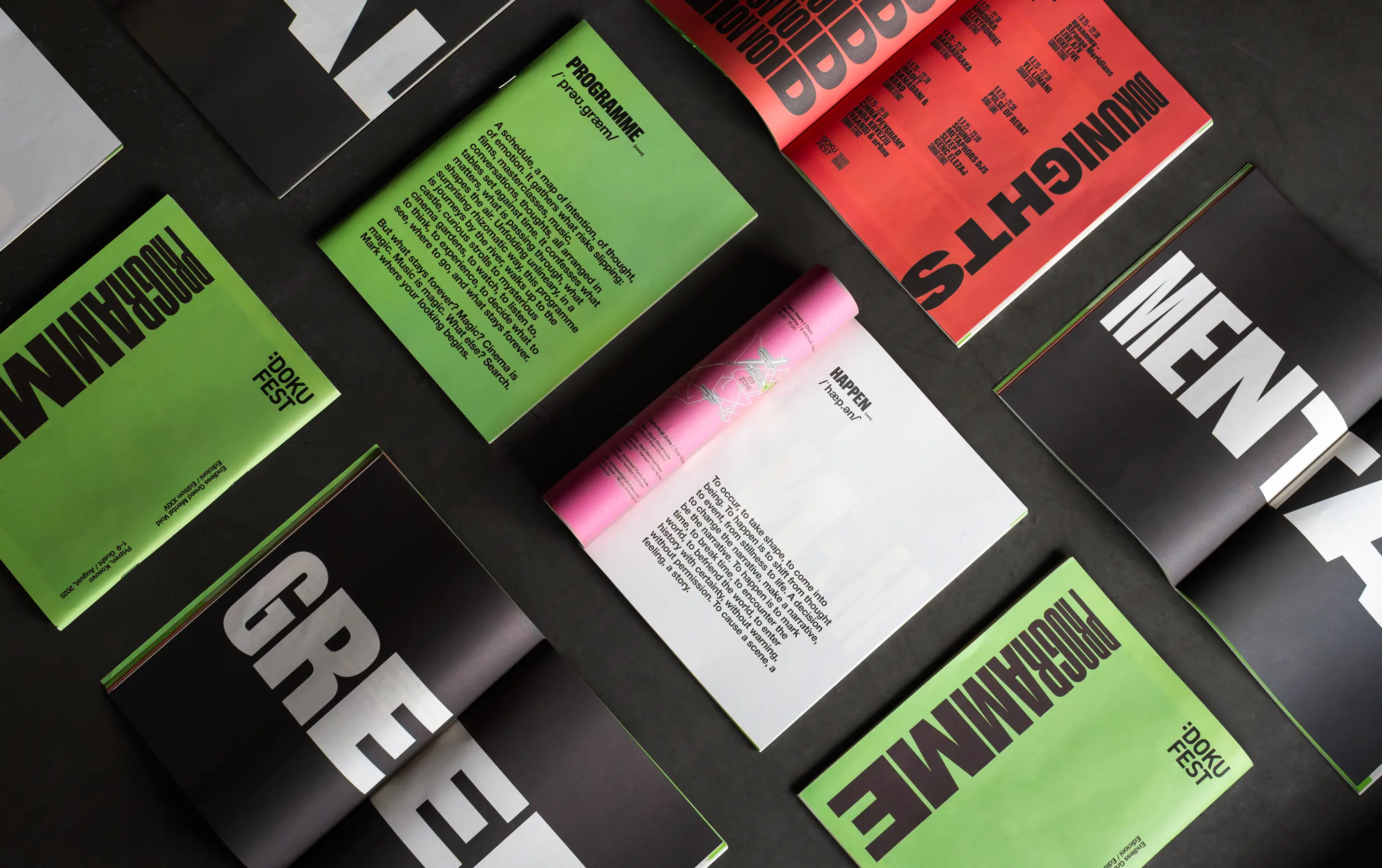 We developed the full campaign design for DokuFest 2025, including posters, billboards, merch, social media, and festival installations, accompanied by a purpose-built vocabulary: a poetic word dictionary woven through every touchpoint.